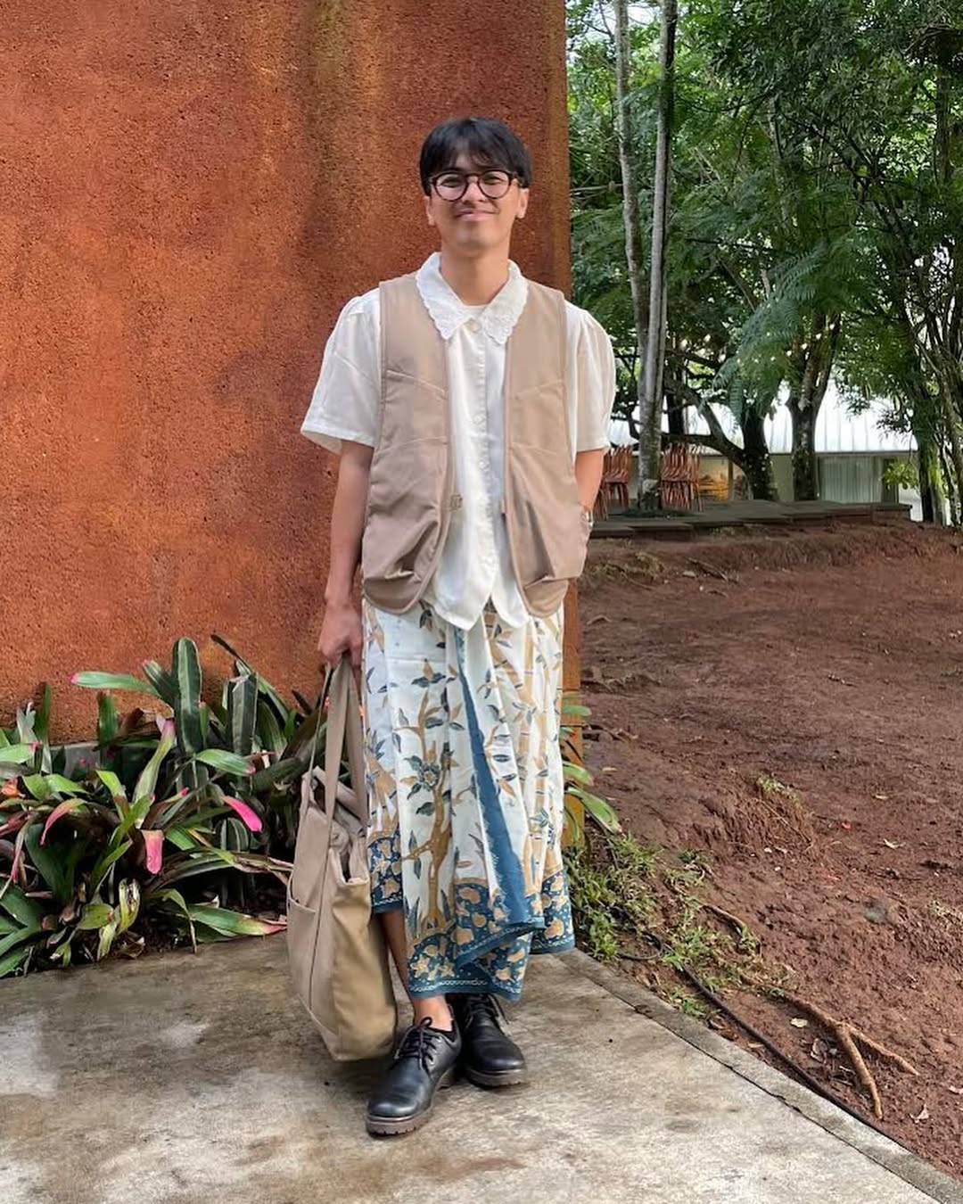 Bagi penyuka earth tone, ide outfit berikut ini bisa jadi inspirasi. Tambahkan sentuhan vest atau aksesori polos untuk menonjolkan keindahan kain tradisionalmu.